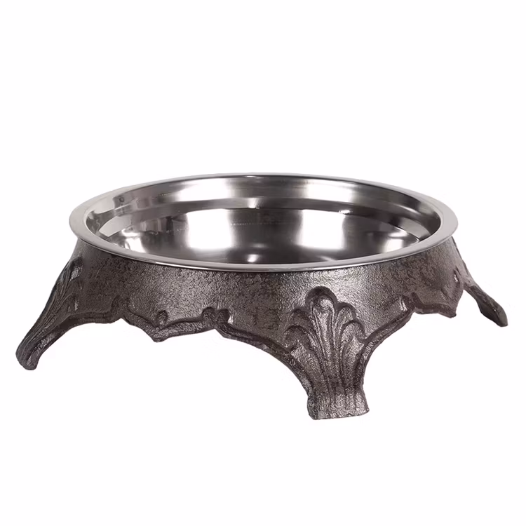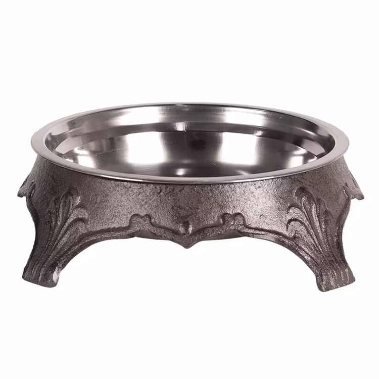 En enkel mat/vattenskål för din fyrbenta vän. Stativet i stadigt gjutjärn och löstagbar metallskål.