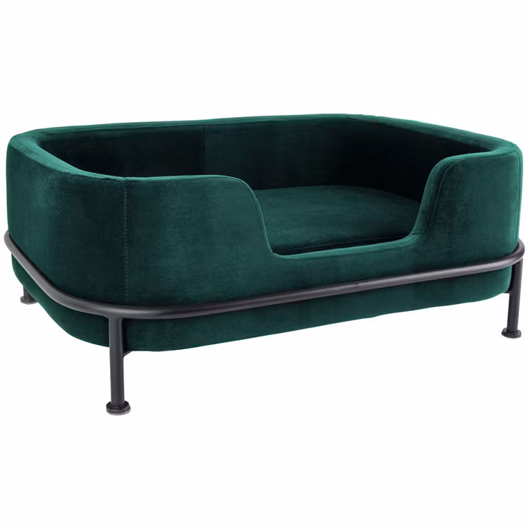 En perfekt hundsäng för att skämma bort din bästa vän! Sängen har en klassisk form av en vanlig hundsäng, men i en mer modern design. Tillverkad i en härlig mjuk och skön Velour, lite som sammet. Även raka moderna svarta ben. Finns i två färger, Mörk Grön och Vinröd.
