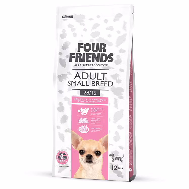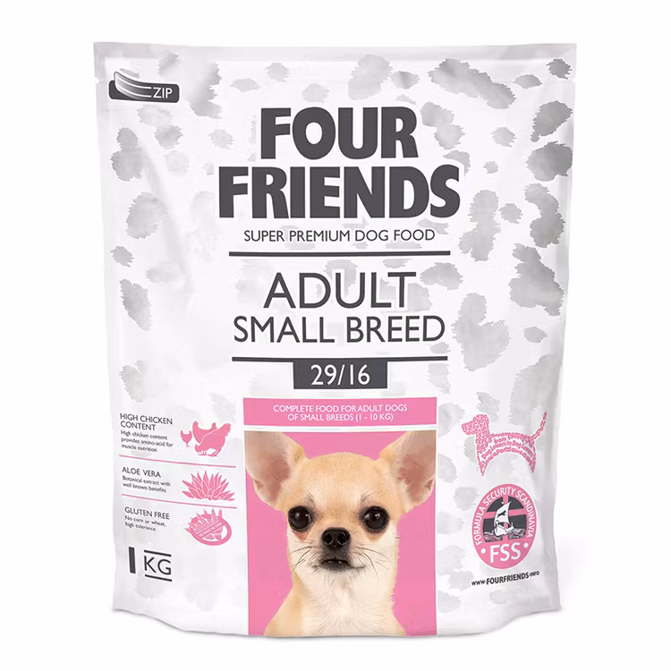 Foder speciellt framtaget för behovet hos små hundar (1-10kg). Innehåller 42% rent kycklingkött som har viktiga aminosyror och fett som ger hunden den energi dess lilla kropp behöver. Genom att ha ris som källa till kolhydrater i fodret så blir det extra skonsamt för den mindre och ofta känsligare magen. Detta i kombination med probiotika och aloe vera gör att fodret är skonsamt och tolereras av de flesta hundar. Dessutom består fodret av extra små bitar för att det ska vara lättare att tugga och svälja för mindre mun och hals.