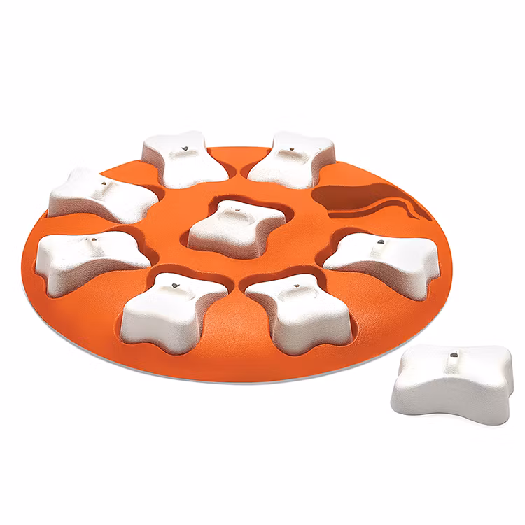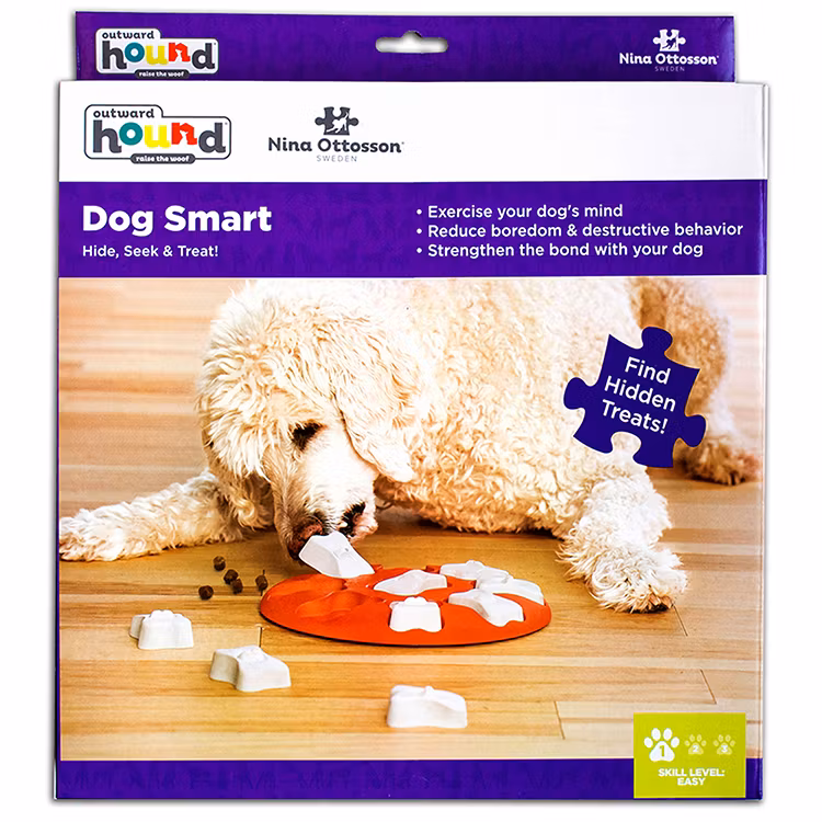 En enklare aktivitetsleksak där hunden behöver lyfta klossarna för att komma åt godsakerna inuti. Klossarna är gjorda så att hunden inte ska kunna välta ut dom med tassen utan måste använda munnen för att lyfta på dom. Klossarna går att vända på för att göra dom svårare för hunden att få upp. Leksaken är enkel att rengöra och tillverkad av livsmedels godkända material fri från BPA, PVC och ftalater.