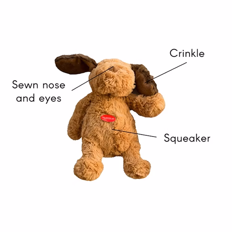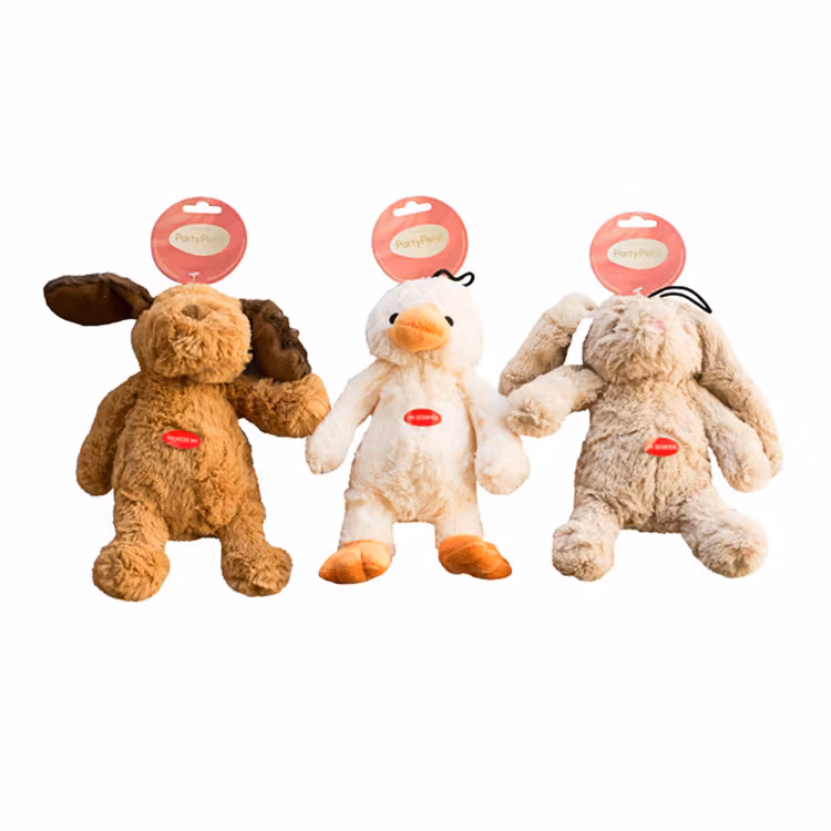 En mjuk kompis till din pälskling med flera små detaljer. Dessa mjukisar är av hög kvalité och har stimuli för hunden så som delar som prasslar och piper utöver att vara väldigt mjuk och mysig att gosa med. Välj mellan hund, anka eller kanin.