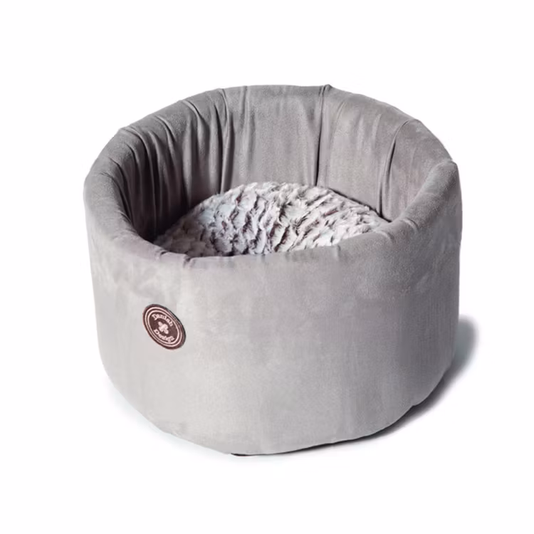 En mjuk och mysig katt bädd från Danish Design med tjocka kanter och en mjuk kudde i. En favorit bland katter som dom kan rulla ihop sig i för att känna sig varma och trygga. Färgerna på denna säng gör att den passar in i de flesta moderna skandinaviska hem. Tillverkad av en mockaimitation och fuskpäls. Kudden går att ta ur för enkel rengöring.