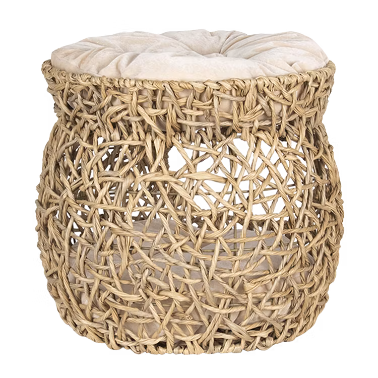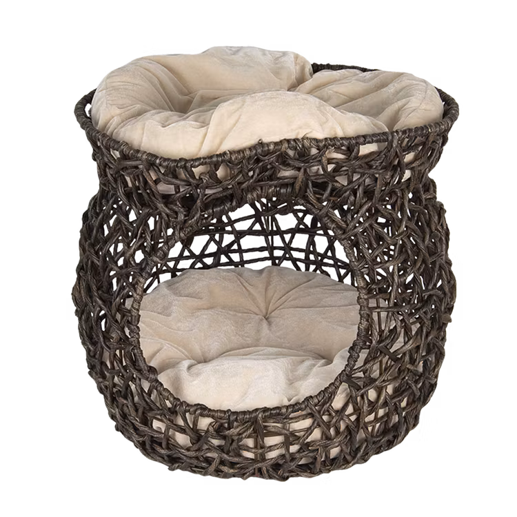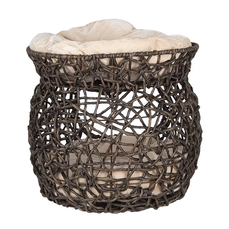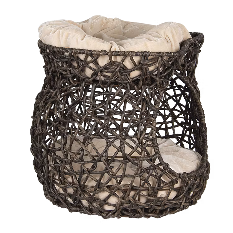 Mysig kattkoja med en bädd ovanpå och igloo nertill. Finns i mörk eller ljus färg. Vävd av polyeten och släpper in gott om ljus så du kan se katten inne i sin igloo krypin.