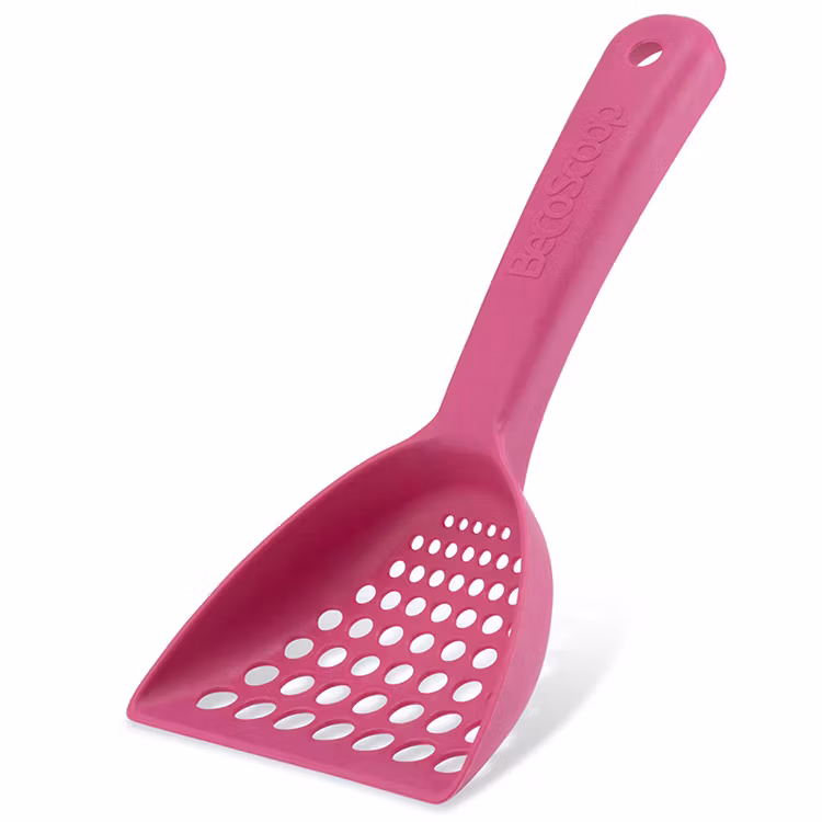 Kattsandssked tillverkad av förnybart material så som bambu och majsstärkelse. Stark konstruktion med ordentligt handtag och lätt att rengöra.