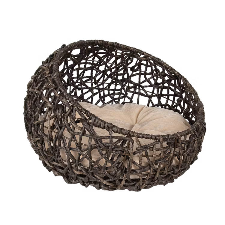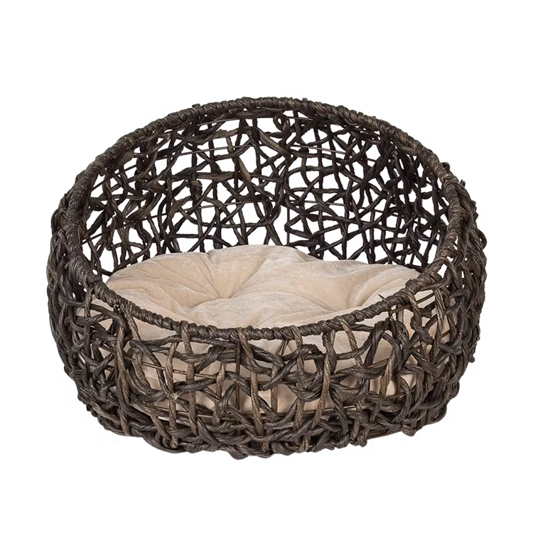 Kattbädd vävd av polyeten med höjd baksida. En mysig plats för din katt eller mindre hund att krypa ihop i. Finns i ljus och mörk färg.